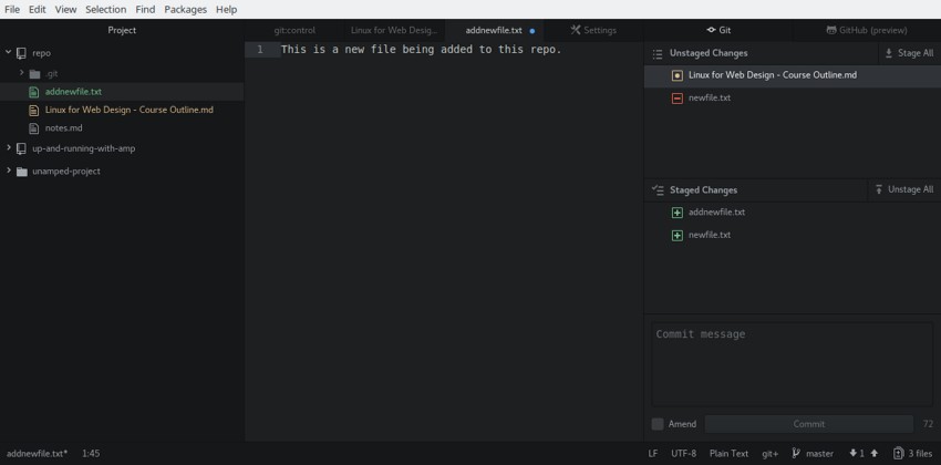 Once that's done, then go to the git repo you set up for your atom project... Most likely that's in the top level of my project. According to the stackshare community, bitbucket has a broader approval, being mentioned in 1750 company stacks & 1492 developers stacks; Klone dein repository auf deinem lokalen system. To open a command window, search for the terminal. In linux, depends if it is a standalone or a guest vm. When editing a file in atom, use the command palette or keyboard shortcuts to: To verify installation was successful, enter which git. 10.12.2018 · i use atom for everything, except for java ( i used to use eclipse), on a daily basis at work on windows and linux.. Here's a link to atom's open source repository on github.